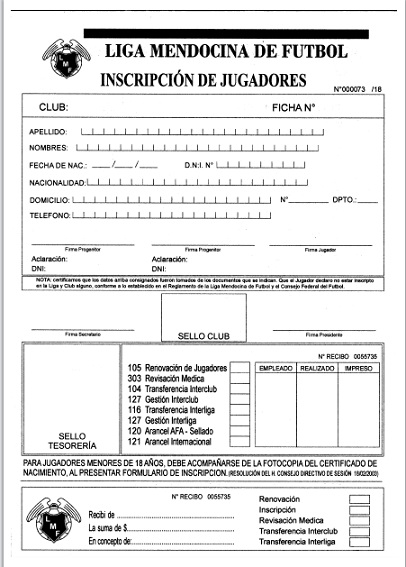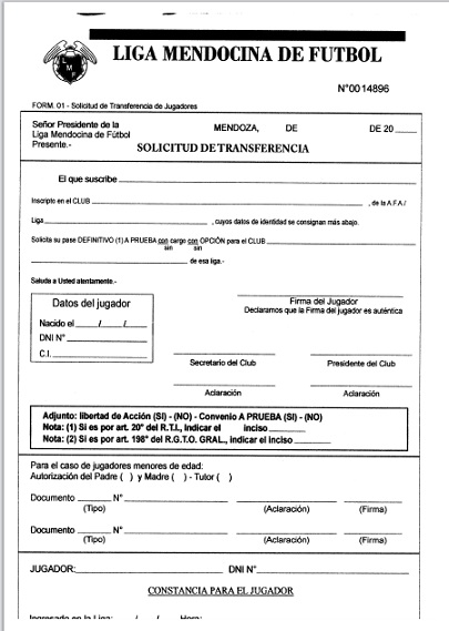 Este formulario debe llenarse con los datos del jugador, firmarse por el club a donde realiza la transferencia.-